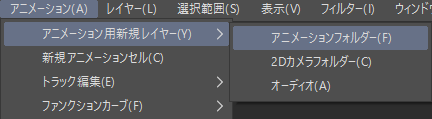 ①[アニメーション]メニュー→[アニメーション用新規レイヤー]→[アニメーションフォルダー]を選び、新規アニメーションフォルダーを作成します。名称を「b 目」に変更しました。