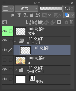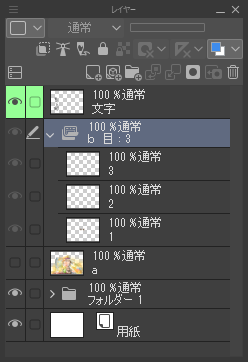 ① 「b」フォルダーに新規レイヤーを2つ追加します。これでフォルダーの中に3つのレイヤーができました。