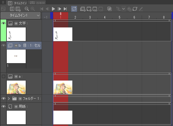 タイムラインにレイヤー構成が反映されました。これでアニメーション編集の準備ができました!