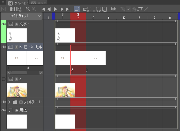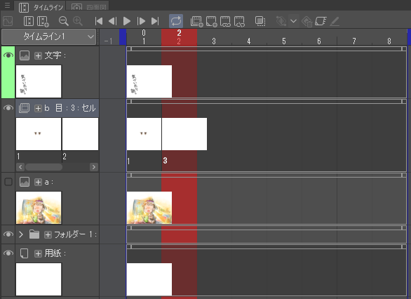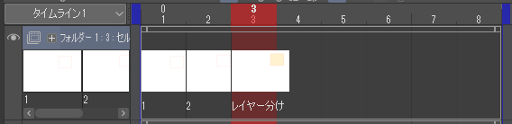 レイヤーフォルダーをセル指定することで、フォルダー内で作成したレイヤー構成をタイムラインにも反映させることができます。