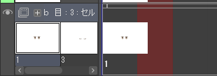 ▲オニオンスキンを表示しながら、「3」レイヤーに閉じた目を描画