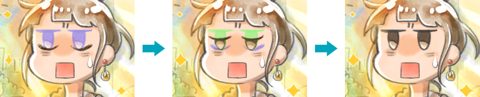中割りを入れずに「1」→「3」の順番にすると、ぱちっと目を閉じる→半目→開いた目、となるので、自然なまばたきを表現できます。