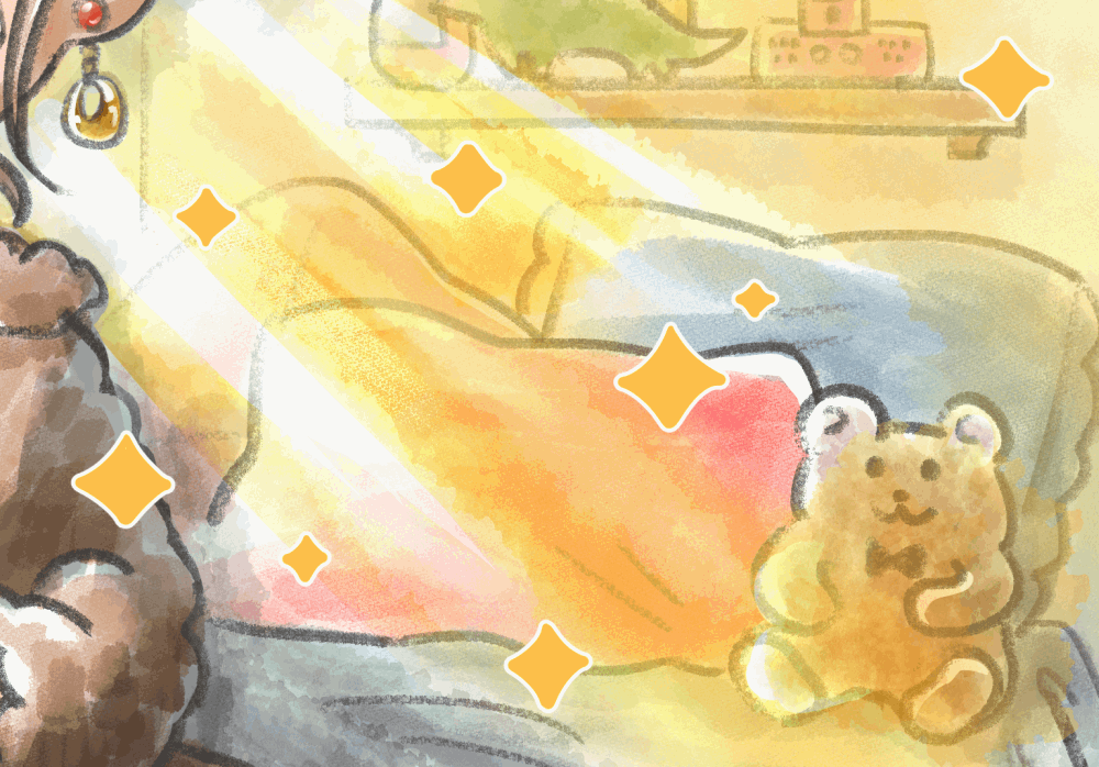 楽しくお絵かきしていたら朝になっていた……というイラストです。あるあるですね…。