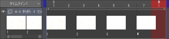 [新規アニメーションフォルダー]の「d きらきら」を背景「a」のひとつ上に作成し、ダイヤをいくつか描き加えました。