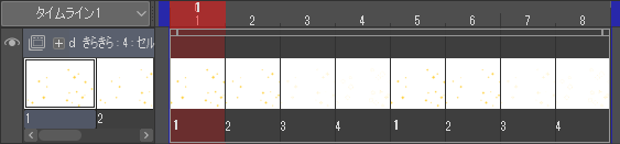 1~4のフレームに「2」→「1」→「2」→「1」と指定すると、まばたきをしている4フレームのうちに、ピコピコっと細かい動きを2回することができました。
