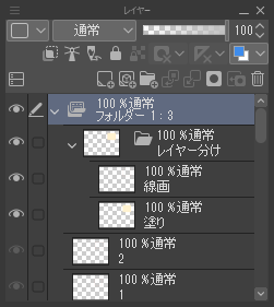今回は一つのレイヤーに塗りを加えましたが、「線画」「塗り」など複数のレイヤーを1つのフレームに指定したい場合は、[アニメーションフォルダー]内に[レイヤーフォルダー]を作成しましょう。