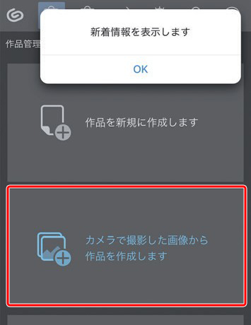 [カメラで撮影した画像から作品を作成します]をタップします。