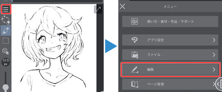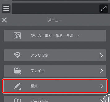 [メニュー]ウィンドウが開くので[ 編集] をタップします。