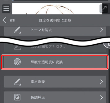 前の段階でレベル補正で紙を白くしたのはここで線以外をきれいに透明にするためでした。