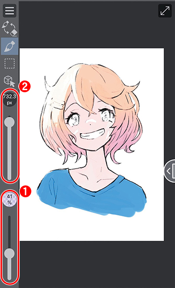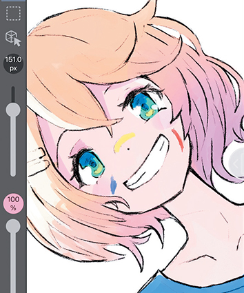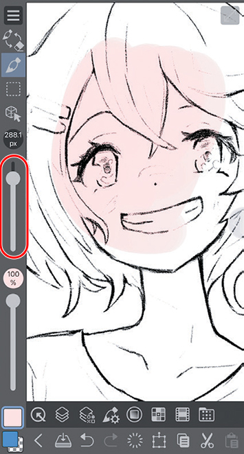 ブラシのサイズはスライダーを動かすことで自由に調節できます。