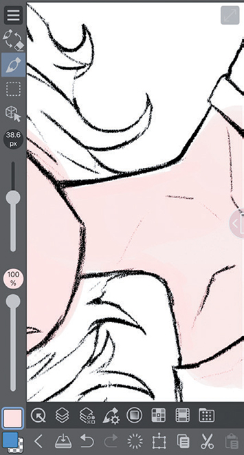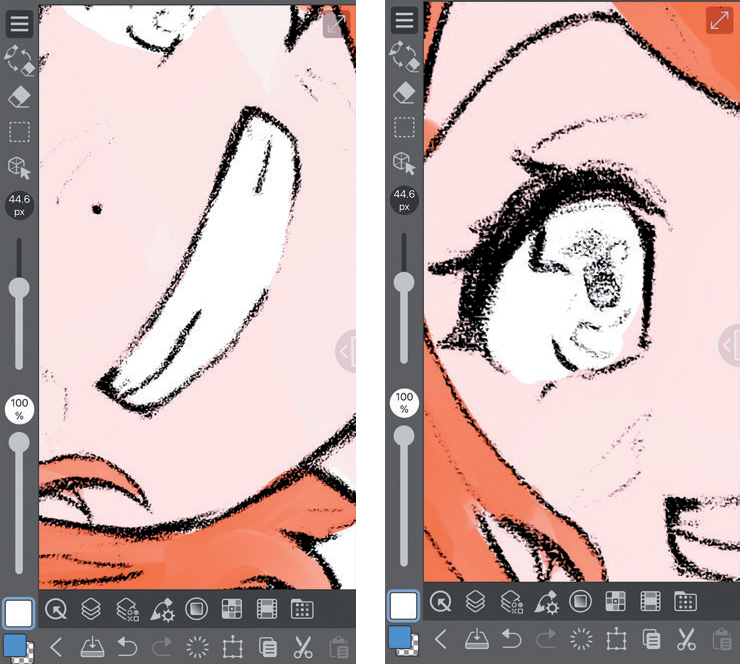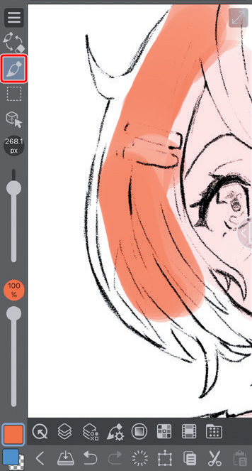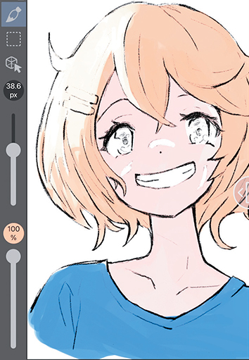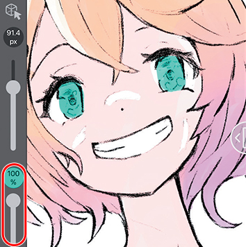 塗りやすい角度に回したり、細かいところは拡大したりして描くと楽です。