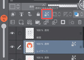 [透明ピクセルをロック]という機能は、今塗ったところ以外の透明部分には色が塗れないようにできる便利な機能です。
