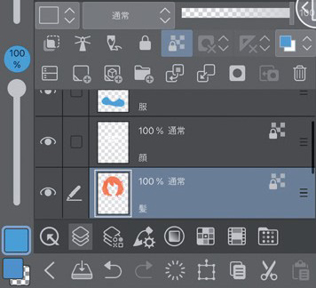 レイヤーが上から「線画」「服」「顔」「髪」「肌」の順に並んでいればOKです。