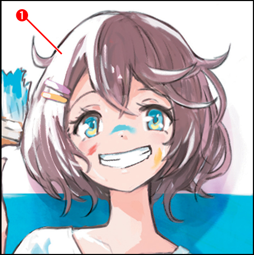 この色で①のヘアピンを塗り、同様に瞳の下の色を拾って②のヘアピンを塗ります。