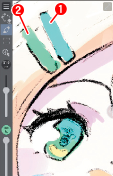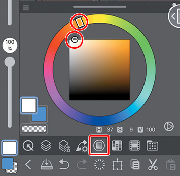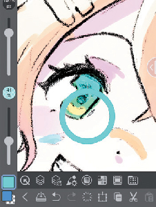 リングの先についた十字部分を白目に合わせると、白目の色を描画色にできます。