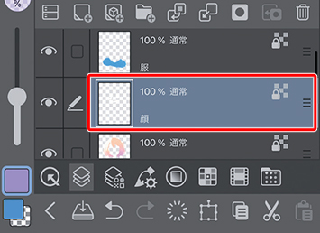 ここまでは「髪」レイヤーを使っているので、必ずレイヤー一覧から「顔」レイヤーを選択しましょう。