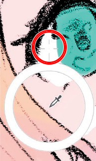 このままだと少し怖いので、瞳にハイライトを描きます。