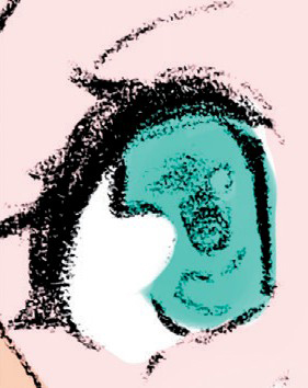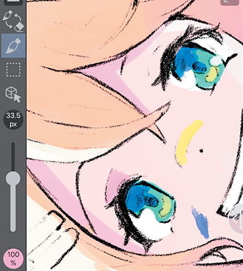 ブラシの不透明度のスライダーを100%に戻して、瞳の中を塗っていきます。