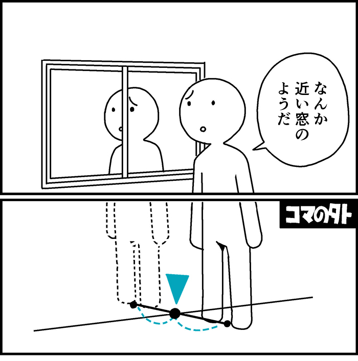そこそこ離れた窓のつもりが映り込みのせいで近くに見えることが