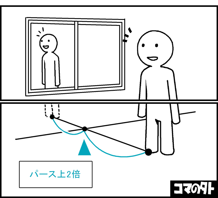 ▼重要!「鏡面世界は鏡のある壁面からパース上2倍」