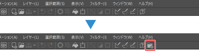 CLIP STUDIO PAINTのメインウィンドウ上部にある各種機能のアイコンが並んでいる部分を[コマンドバー]といいます。