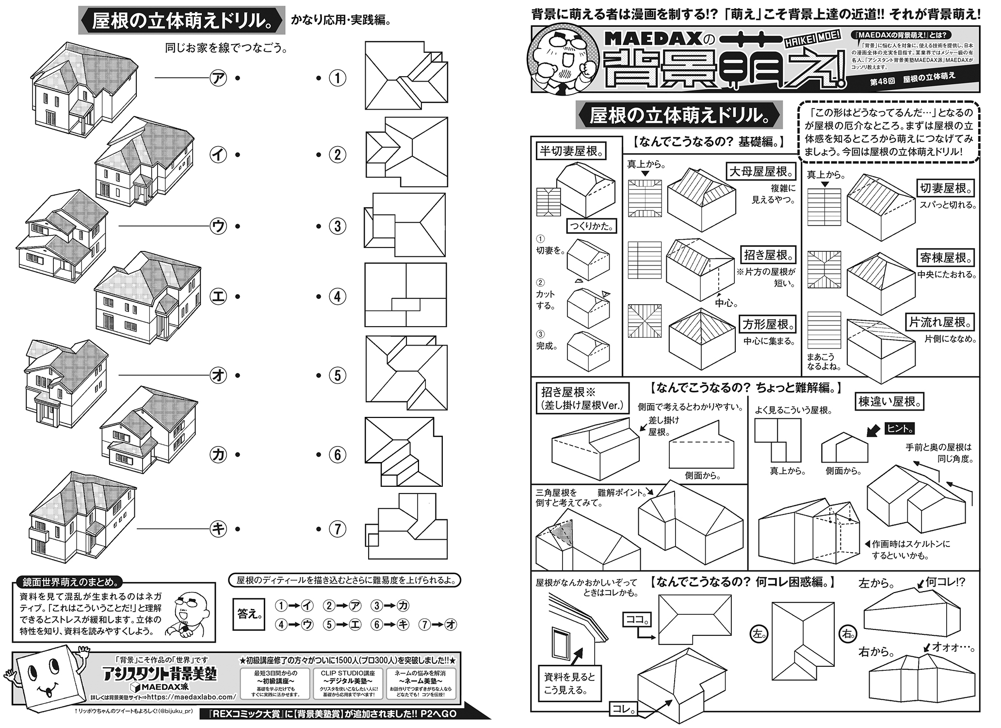 「MAEDAXの背景萌え!」とは? 「背景」に悩む人を対象に、使える技術を提供し、日本の漫画全体の充実を目指す。某業界ではメジャー級の有名人、「アシスタント背景美塾MAEDAX派」MAEDAXがコッソリ教えます。今回は屋根の立体編!