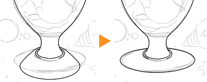 ベクターレイヤーで線画を作成すると、先ほどのグラスの底のように、後から線を修正しやすくなります。