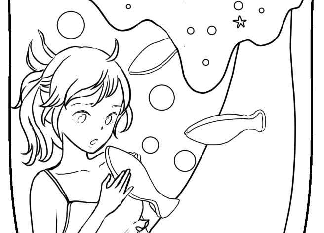 人魚の女の子や小物など、パーツごとに線画を作成していきます。
