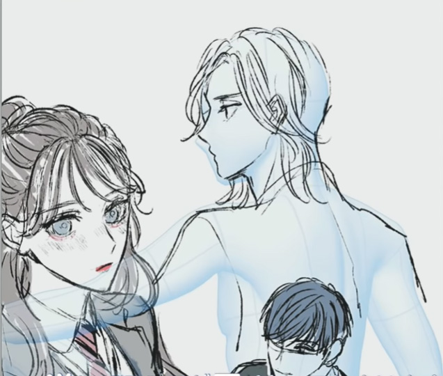 ▽下描きが青一色になりました。色を変更しておくと、ペン入れの時に作業しやすくなります。