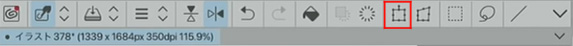 [保存]・[左右反転]・[戻る]・[自由変形]などはコマンドバーに表示しています。