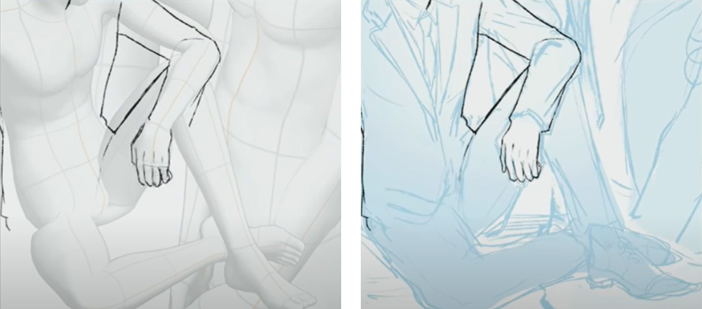重ねて見てみるとポーズは一緒ですが、線は全く違うのがわかりますね。