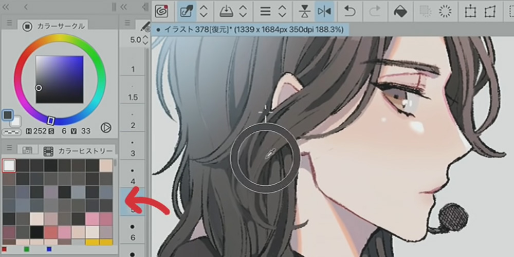 色を選ぶ時に、[カラーヒストリー]パレットを使うと、今まで使用した色を簡単に取得できるので便利です。