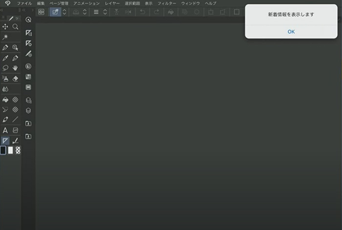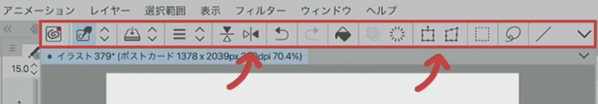 ▽iPad版のデフォルトのワークスペースでは、上部と左側にツールが並んでいます。