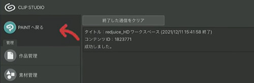 ダウンロードが終わったら、[PAINTへ戻る]をタップします。