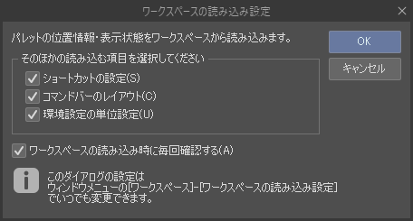 以下のようなダイアログが表示されるので、確認してOKを押してください。