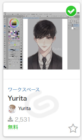 CLIP STUDIO ASSETSで、ローマ字で「Yurita」と入力すると表示されます。