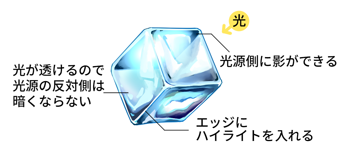 まず、基本的な氷の描き方として、光との関係を見ていきましょう。