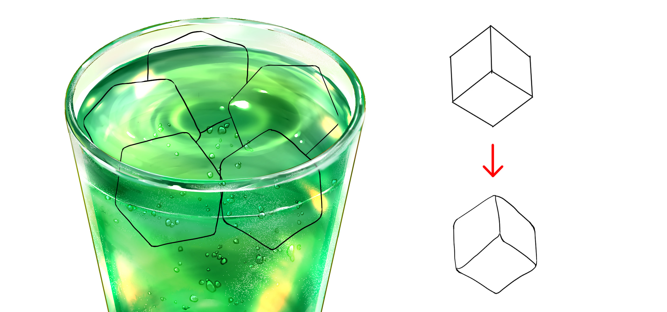 ここからは、グラスに注がれた液体に浮かぶ氷を描いていきます!