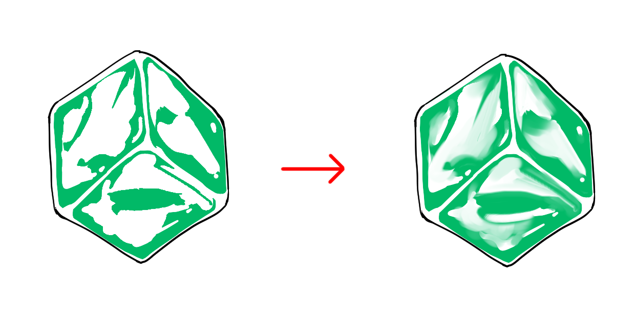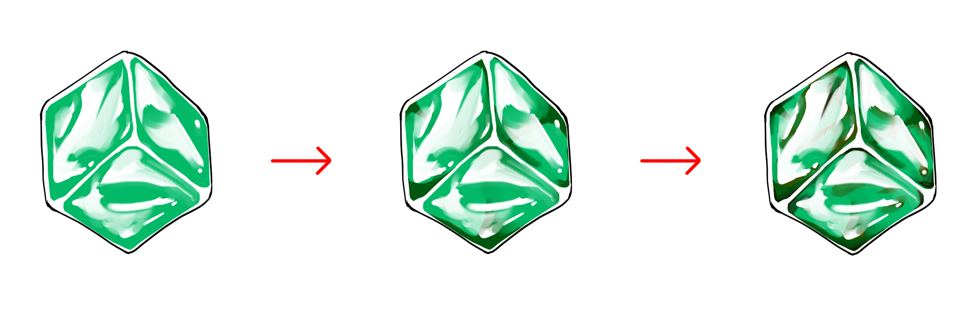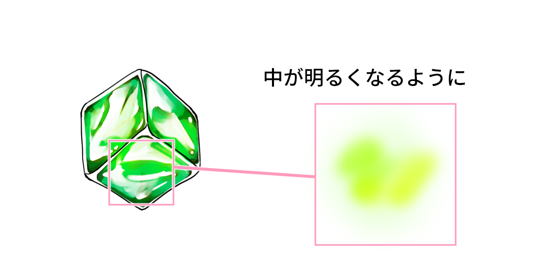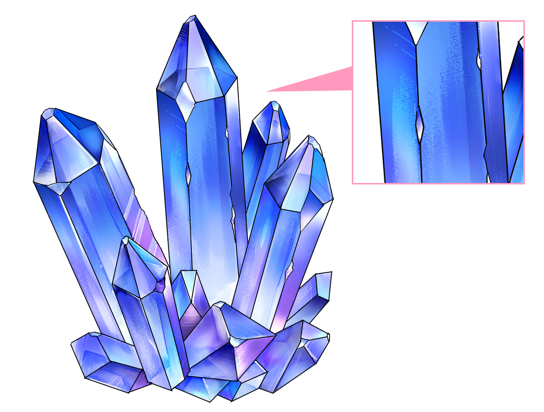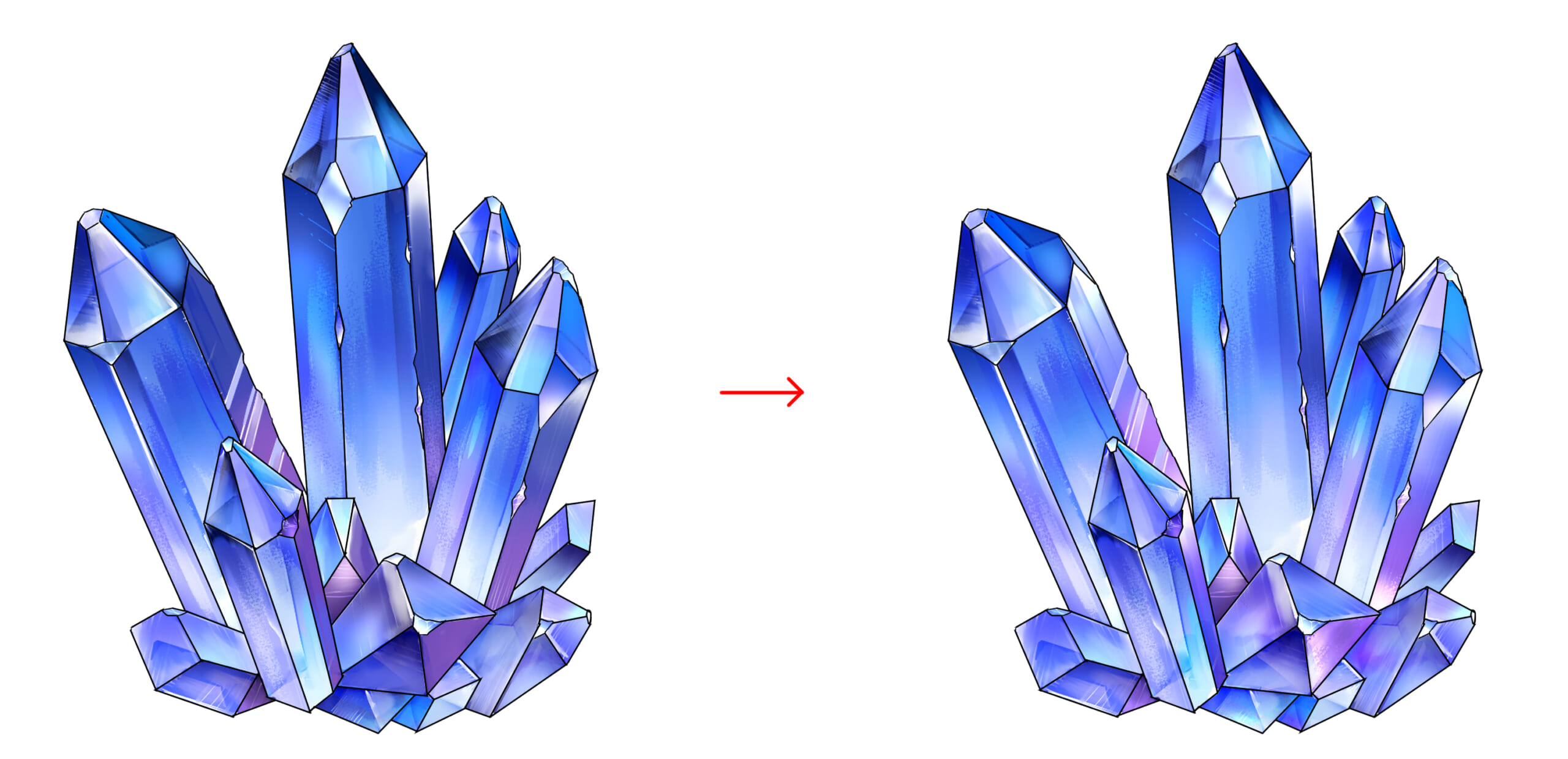 少し違う色味の描画を足すことで、クリスタルの複雑な光の反射を表現できます。
