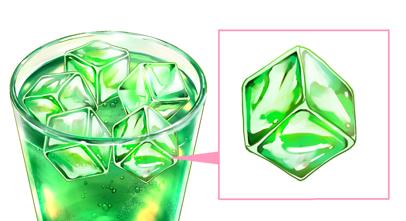 今回は、メロンソーダに浮かんだ氷を描きます。