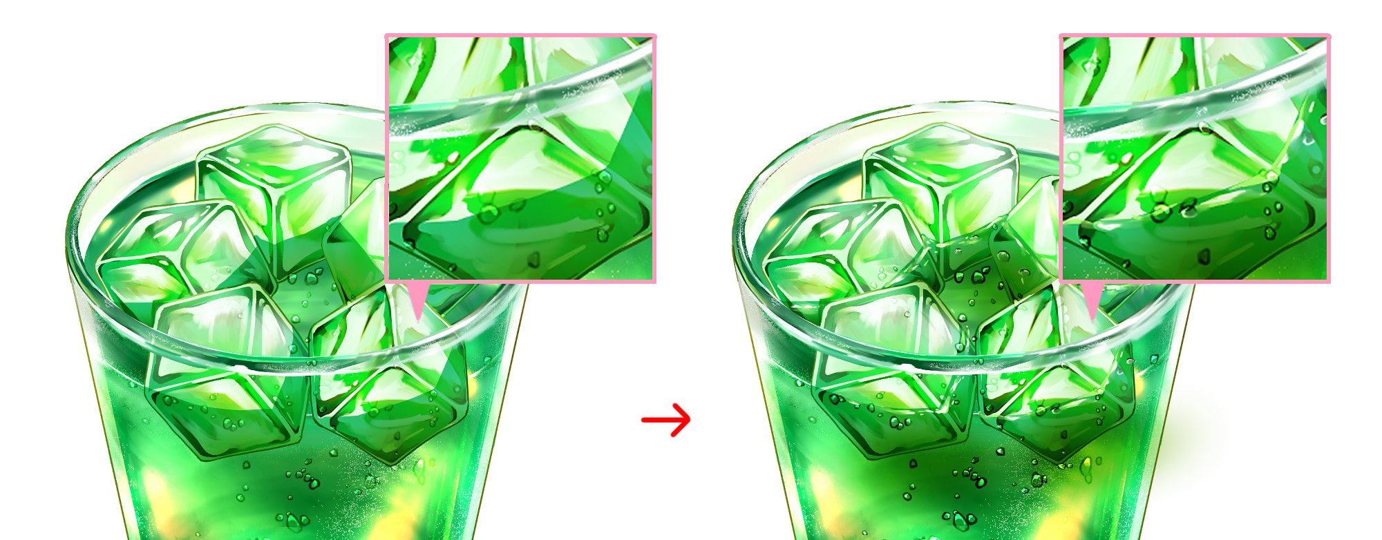 このような光の描き方をふまえることで、氷の透明感を表現することができます。
