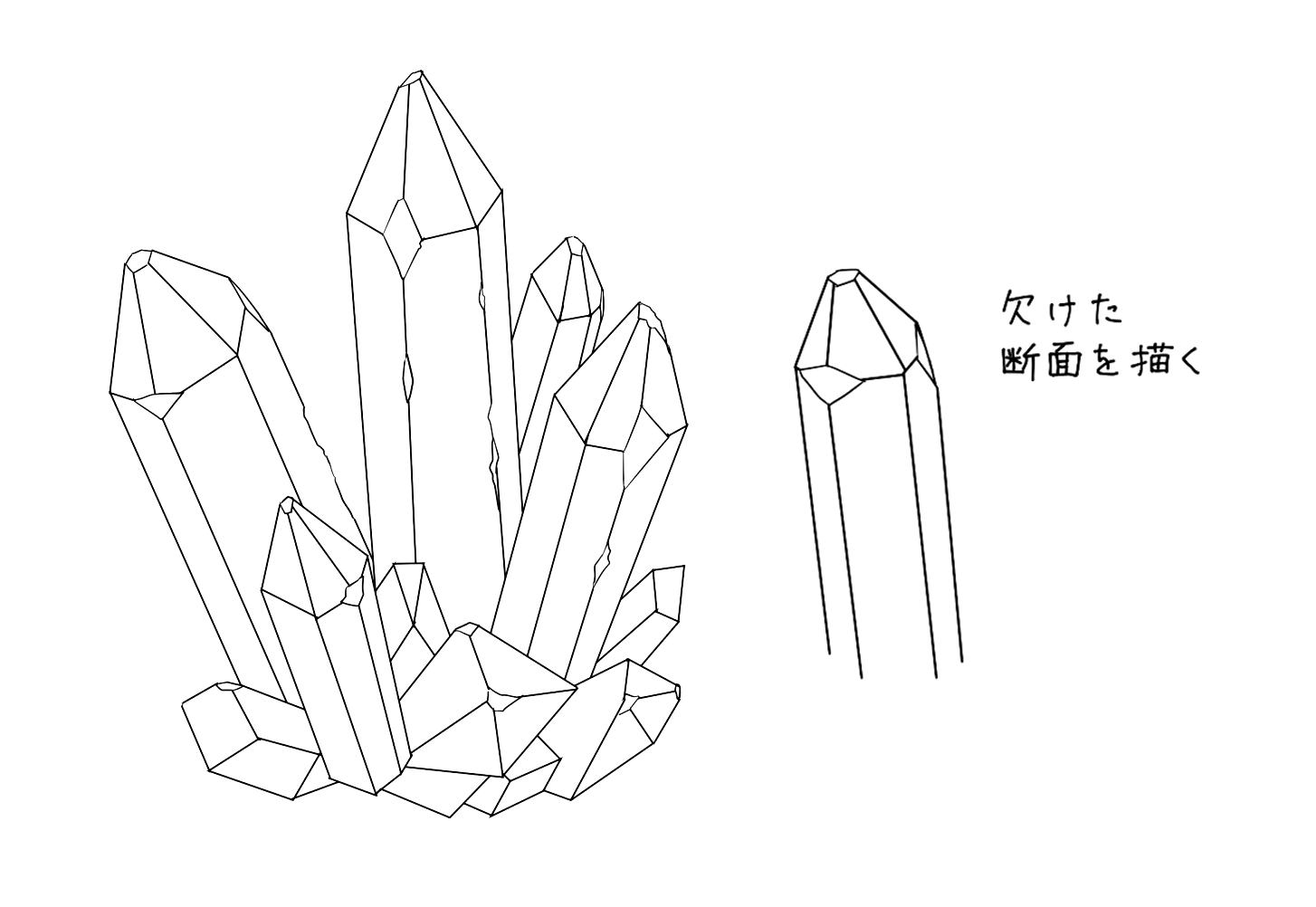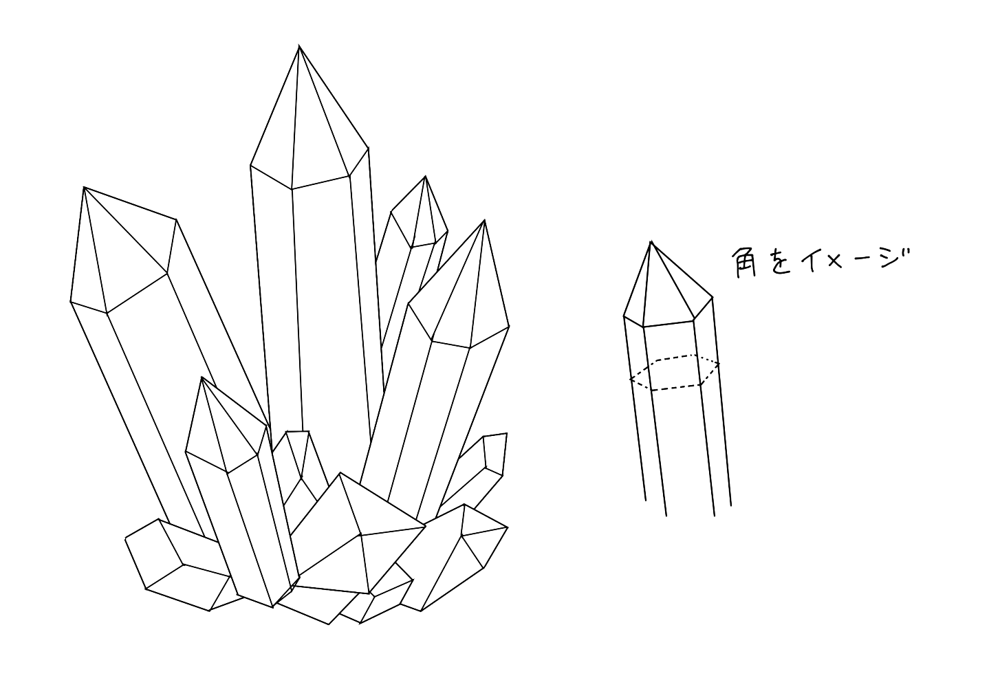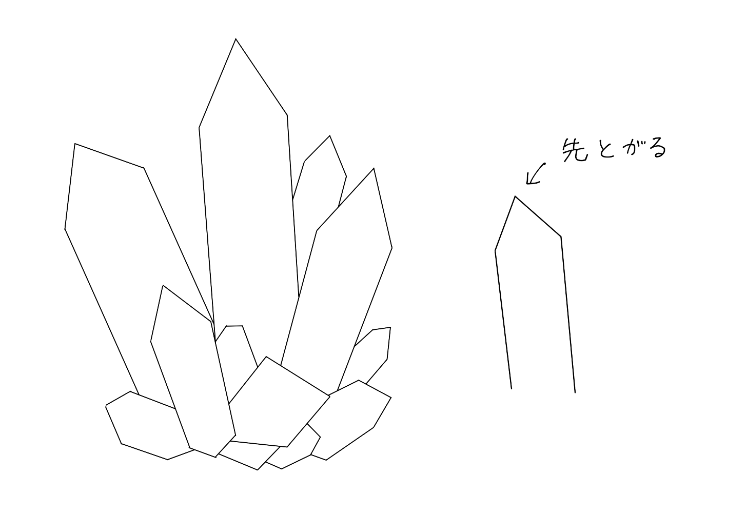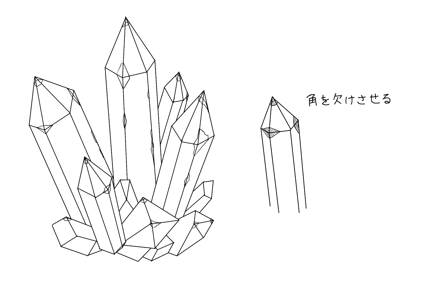 複数のクリスタルを描く場合は、角度を揃えないようにランダムに配置させます。