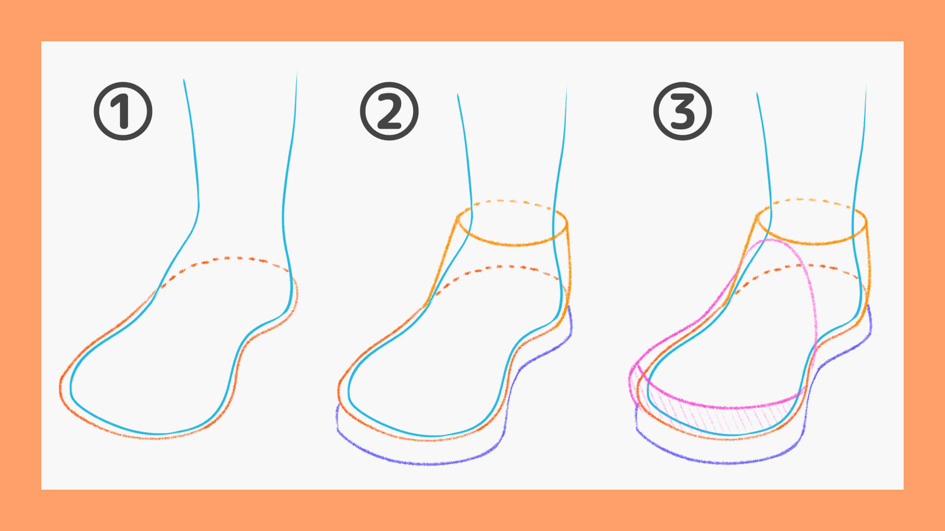 特に「足の甲」と「かかと」を意識すると描きやすくなります。