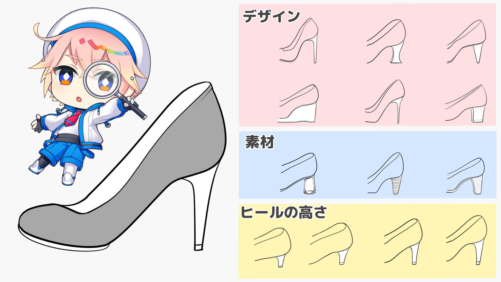 靴のことを理解し、自分の好きな靴を好きなキャラクターに履かせてみましょう。