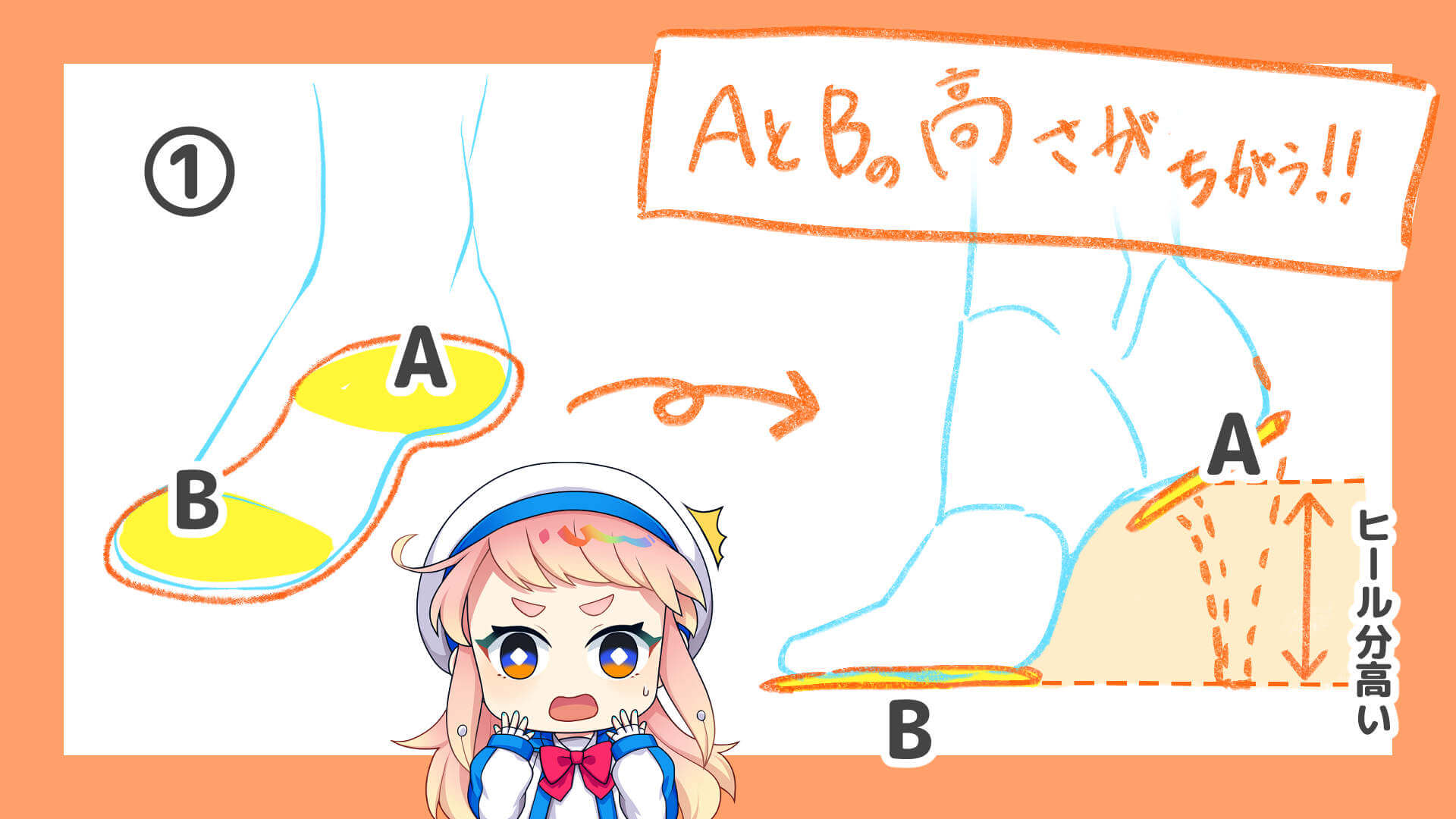 ただ、ここはAとBの高さがヒール分違うので注意しながら描きましょう。