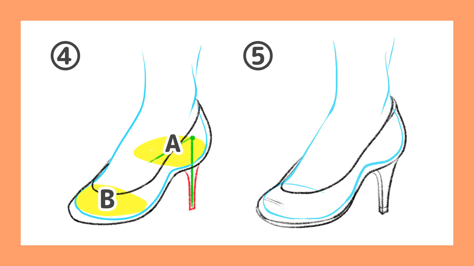 ②ヒールはかかとから垂直に下ろすイメージで描きます。