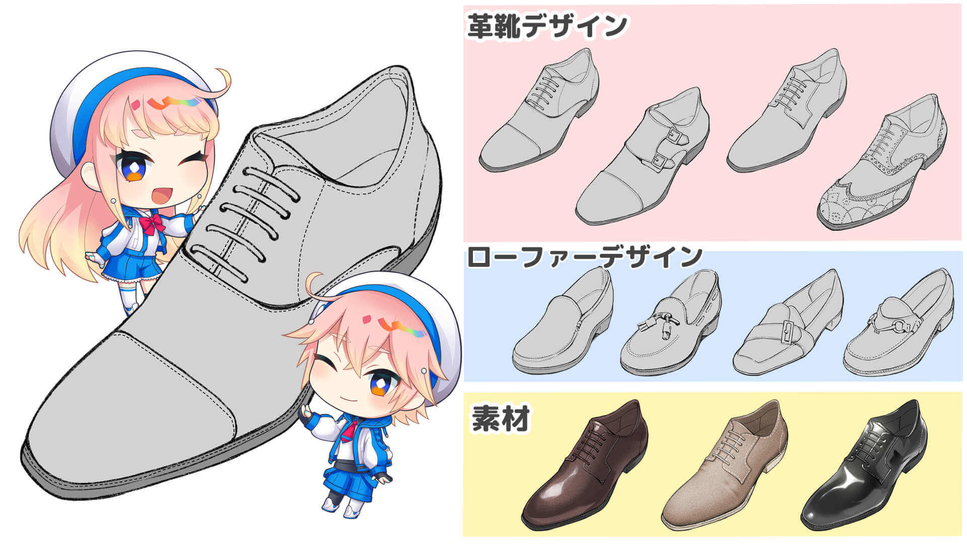 靴の種類を決めると描く靴の資料を集めやすく、より描きやすくなります。