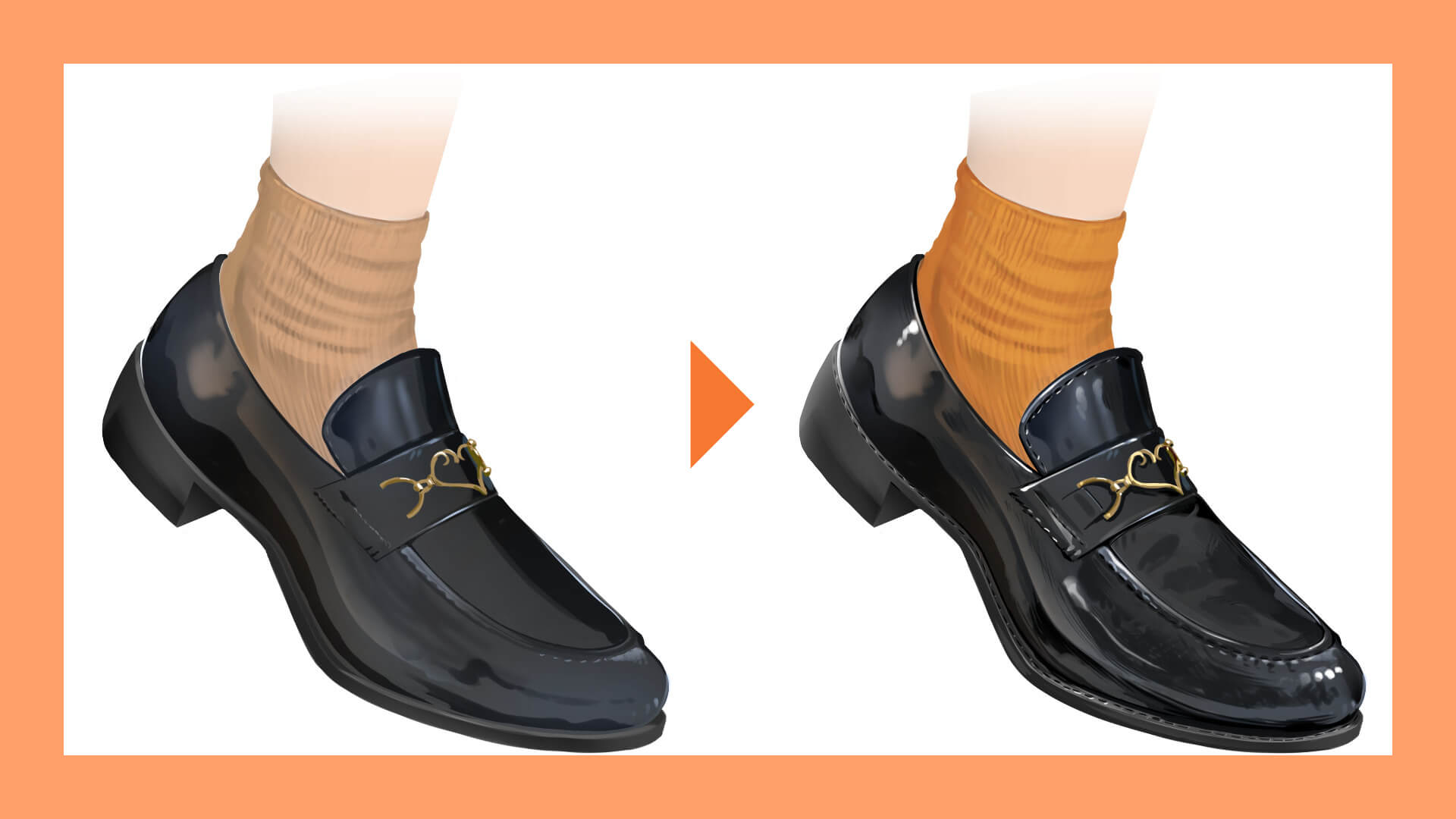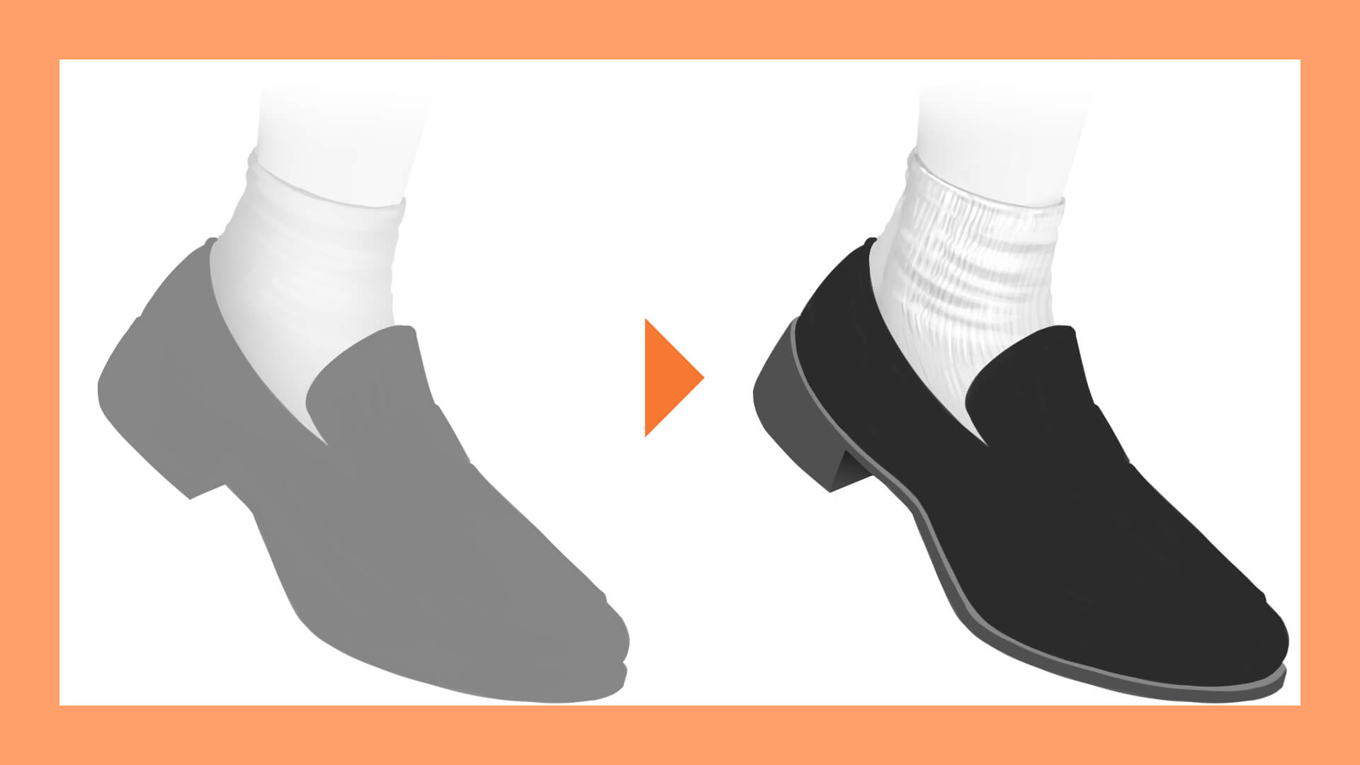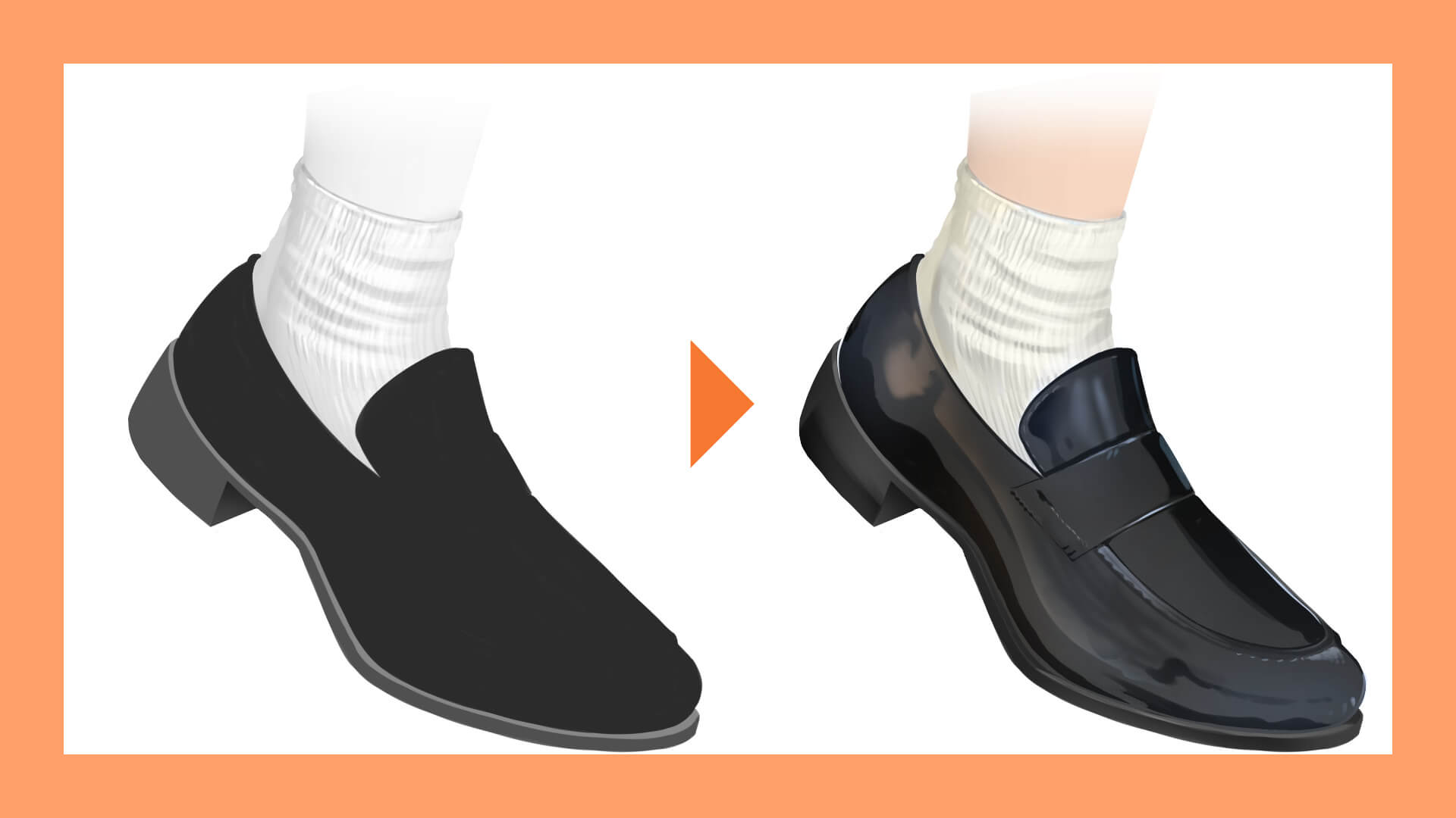 ローファーや革靴は、縫い目のところに凹凸が出来るので、凹凸にも影やハイライトがあると立体感が出たり情報量が増えて、完成度が上がります。
