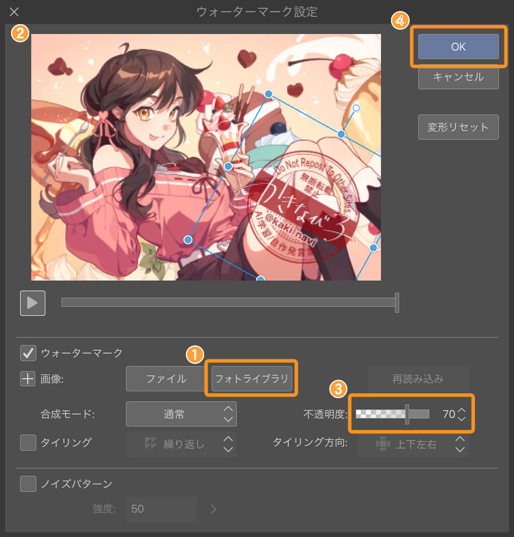 ウォーターマークを活用すれば、自分の作品であることが一目で分かり、盗用を防ぐ効果も期待できます!