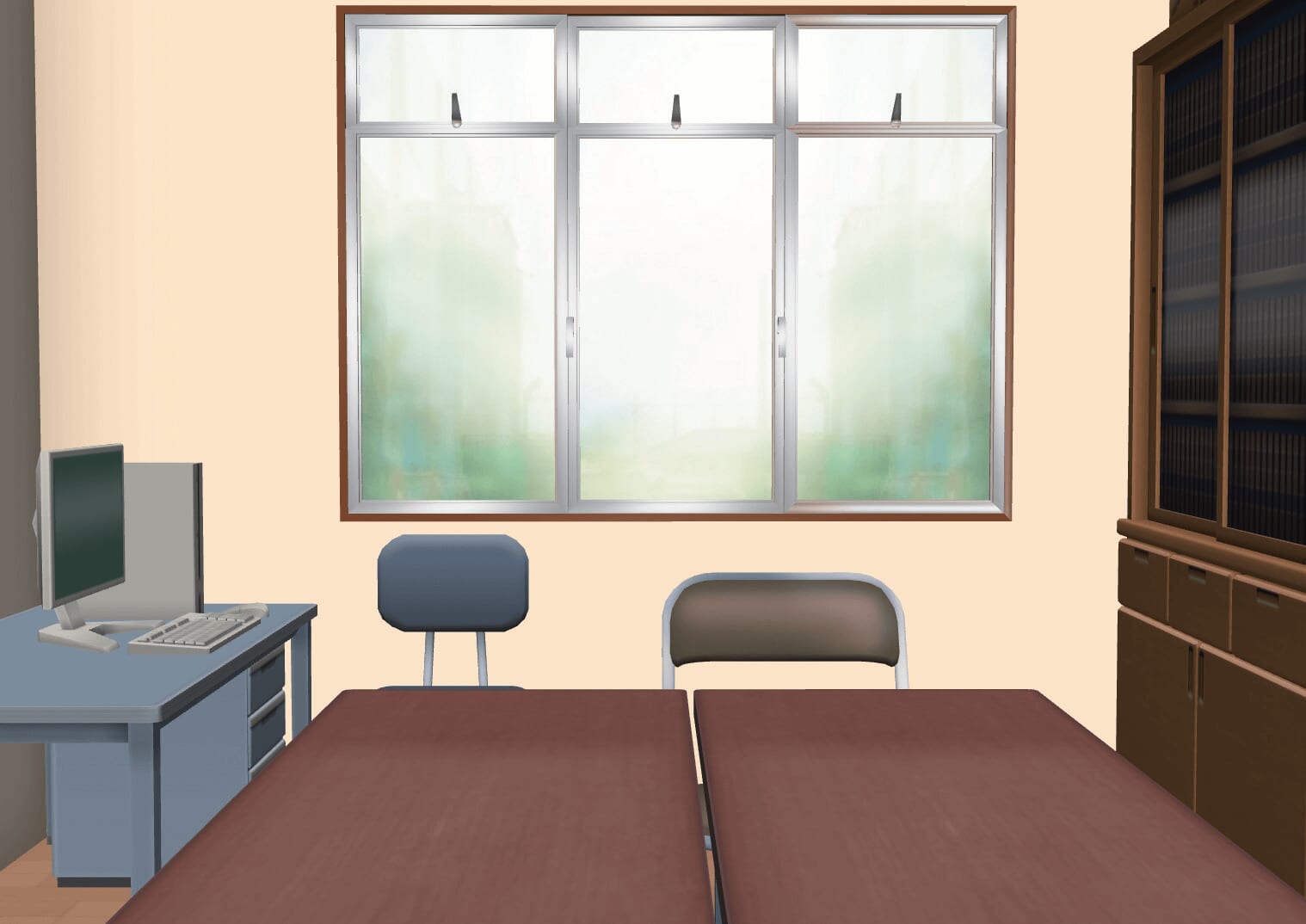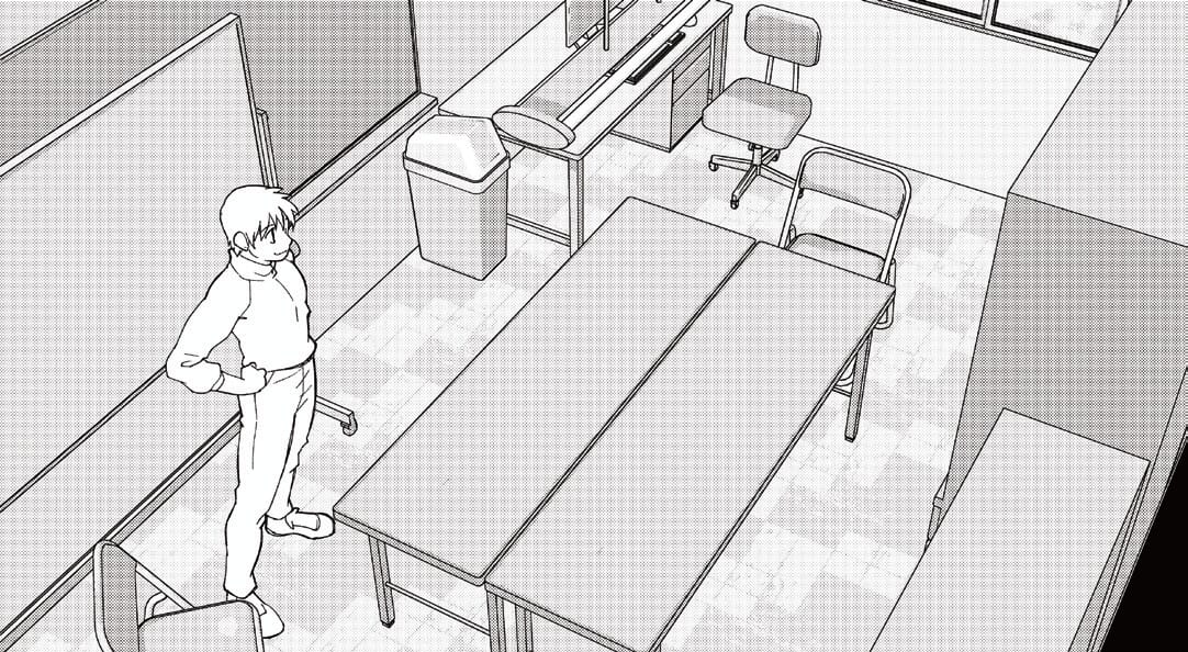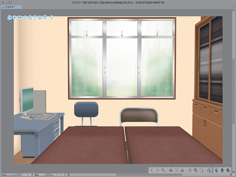 ここでは、[素材]パレットの[3D]→[背景]→[学校施設]にある3D素材「部室(文化部)-Ver.2」を使っています。
